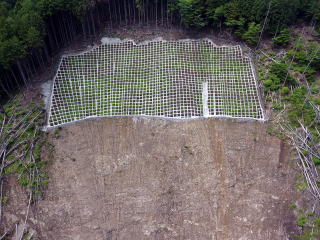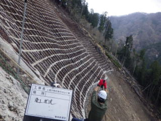 工事内容…簡易法枠工(枠内植生基材吹付)
